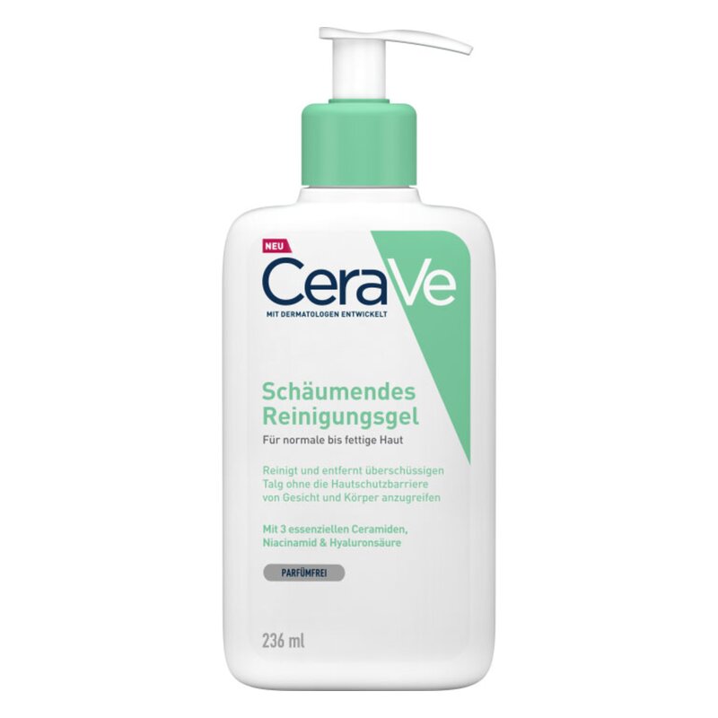 Das schäumende Reinigungsgel von CeraVe für Gesicht und Körper wurde mit Dermatologen entwickelt. Es schäumt sanft auf – ohne dabei den Schutz der natürlichen Hautbarriere anzugreifen. Das erfrischende Gel enthält 3 essenzielle Ceramide sowie Hyaluron und entfernt effektiv überschüssiges Fett, Schmutz und Make-up. Ohne Parfüm.