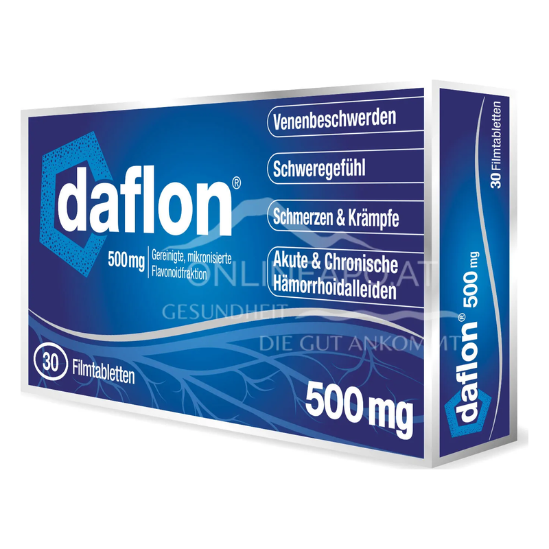 Daflon 500 mg lindert die Beschwerden bei chronischen Venenleiden der Beine, insbesondere Schweregefühl, Schmerzen und nächtliche Wadenkrämpfe.