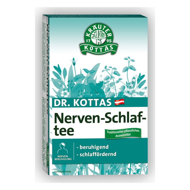 Dr. KOTTAS Nerven-Schlaftee ist ein traditionelles pflanzliches Arzneimittel zur Anwendung bei milden nervös bedingten Unruhezuständen, leichten Stresssymptomen und Einschlafstörungen.