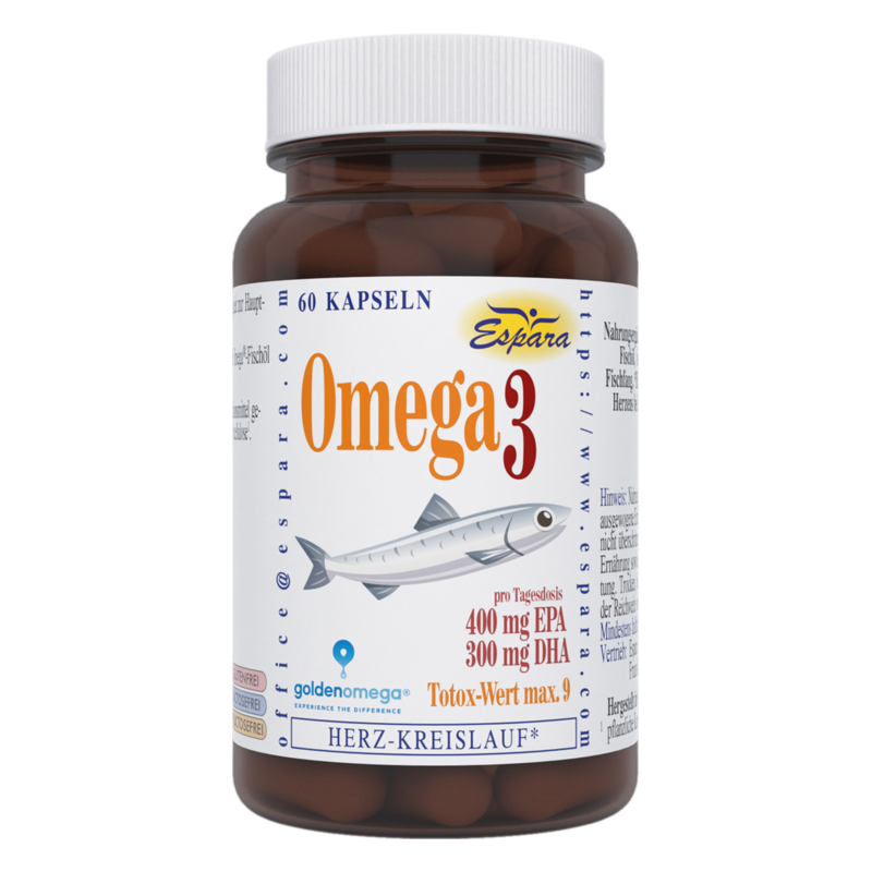 Nahrungsergänzungsmittel mit hochwertigem Golden Omega®-Fischöl, hergestellt aus Anchovis aus 2-fach-zertifiziertem Fischfang. DHA und EPA tragen zur normalen Funktion des Herzens bei. Diese positive Wirkung wird durch die tägliche Aufnahme von 250 mg EPA und DHA erzielt. DHA trägt zur Aufrechterhaltung der normalen Sehkraft und normalen Gehirnfunktion bei. Dieser positive Effekt wird durch die tägliche Aufnahme von 250 mg DHA erzielt.