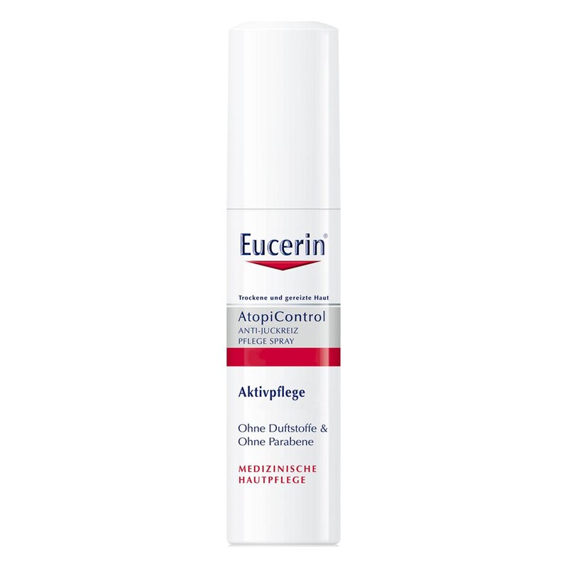 Eucerin AtopiControl ANTI-JUCKREIZ Pflege Spray sorgt für eine sofortige Linderung des "Teufelskreises" von atopischer Haut – des Kreislaufs von Jucken und Kratzen. Es enthält den juckreizlindernden Wirkstoff Polidocanol sowie Menthol, das eine kühlende Wirkung aufweist. Eucerin AtopiControl ANTI-JUCKREIZ Pflege Spray ist für Erwachsene und Kinder ab drei Jahren geeignet