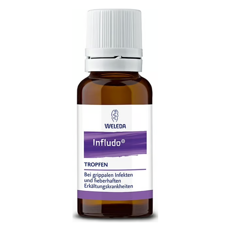 Im akuten Stadium einer Erkältung harmonisieren Infludo® Tropfen die Entzündungs- und Wärmeprozesse, unterstützen die körpereigene Abwehr und lindern Beschwerden. Sie harmonisieren die vermehrte Schleimbildung und regulieren das Fieber, ohne es zu unterdrücken. Gliederschmerzen und Zerschlagenheitsgefühl werden gelindert und der Genesungsprozess wird gefördert. Der potenzierte Phosphor in Infludo® hat eine belebende Wirkung, weshalb empfindliche Menschen, Säuglinge und Kleinkinder unter 6 Jahren mit Unruhe und Schlafstörungen reagieren können. In diesem Fall ist die Behandlung mit Infludoron® Globuli vorzuziehen.